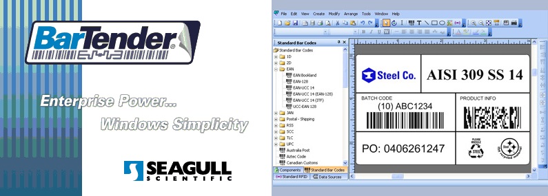 Seagull BarTender ist die marktführende echte Windows-Software zum Drucken von Etiketten und Strichcodes. BarTender war das allererste Windows-Etikettierungsprogramm, das sowohl Laser- als auch Thermodrucker unterstützte. Heute ist Seagull der Welt größte Entwickler von echten Windows-Treibern für Etiketten und RFID-Tag-Druckern. Hunderttausende Anwender in über 110 Ländern vertrauen auf BarTender als die einfachste und zuverlässigste Software in der Etikettenindustrie.